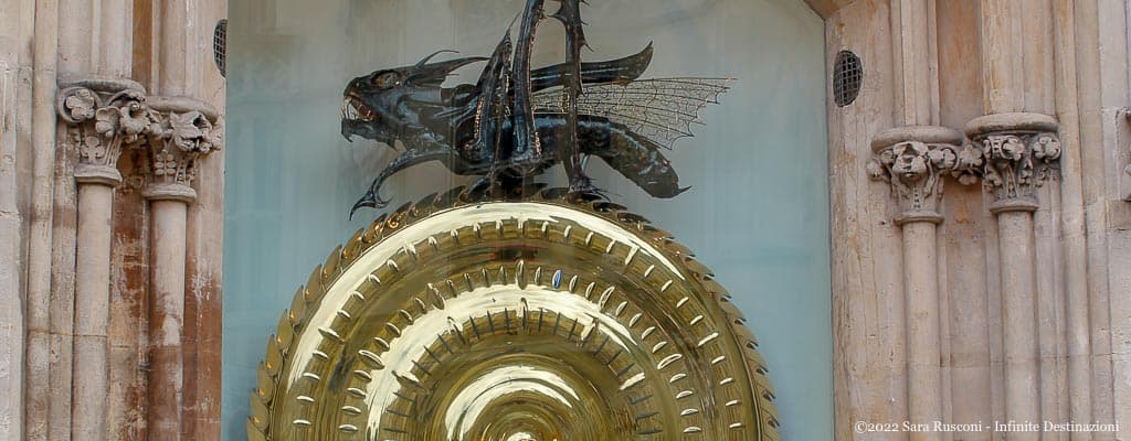 L’orologio, sormontato da un’enorme cavalletta, ha un quadrante composto da un disco placcato d’oro 24 carati con un diametro di 1,5 metri ed è composto da una serie di dispositivi LED che segnano lo scorrere del tempo. Attenzione però perché il funzionamento del Corpus Clock è imprevedibile. C’è infatti un meccanismo che gli permette di accelerare o rallentare in modo apparentemente casuale mostrando così l’ora esatta solamente ogni cinque minuti.