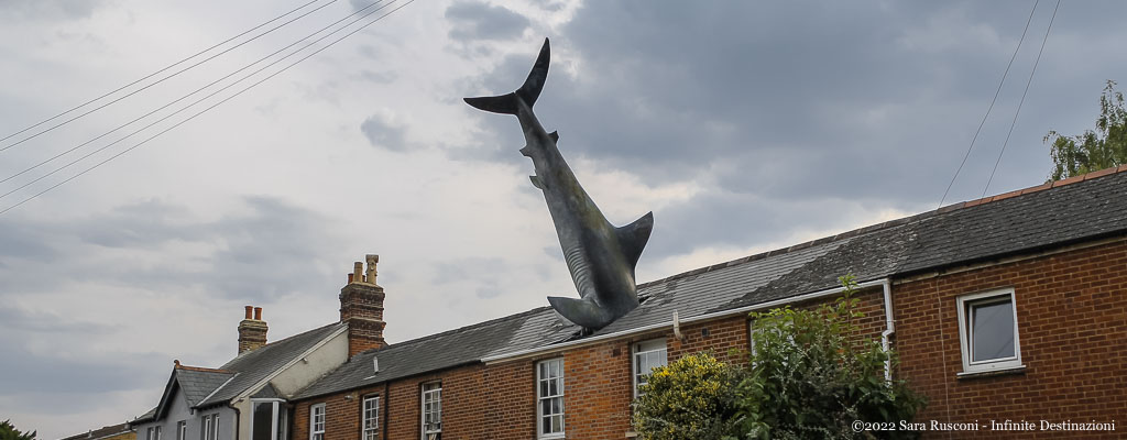 L’Headington Shark è una scultura in vetroresina alta circa 7 metri e mezzo che rappresenta uno squalo conficcato nel tetto di una casa tradizionale inglese a Oxford.