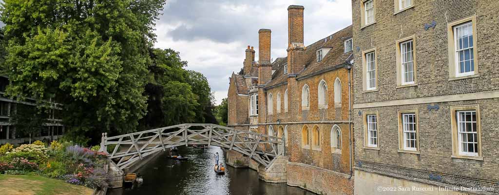 A Cambridge si può vedere il famoso Mathematical Bridge, un grazioso ponte pedonale in legno che attraversa il fiume Cam e che collega le due parti del Queens’ College.